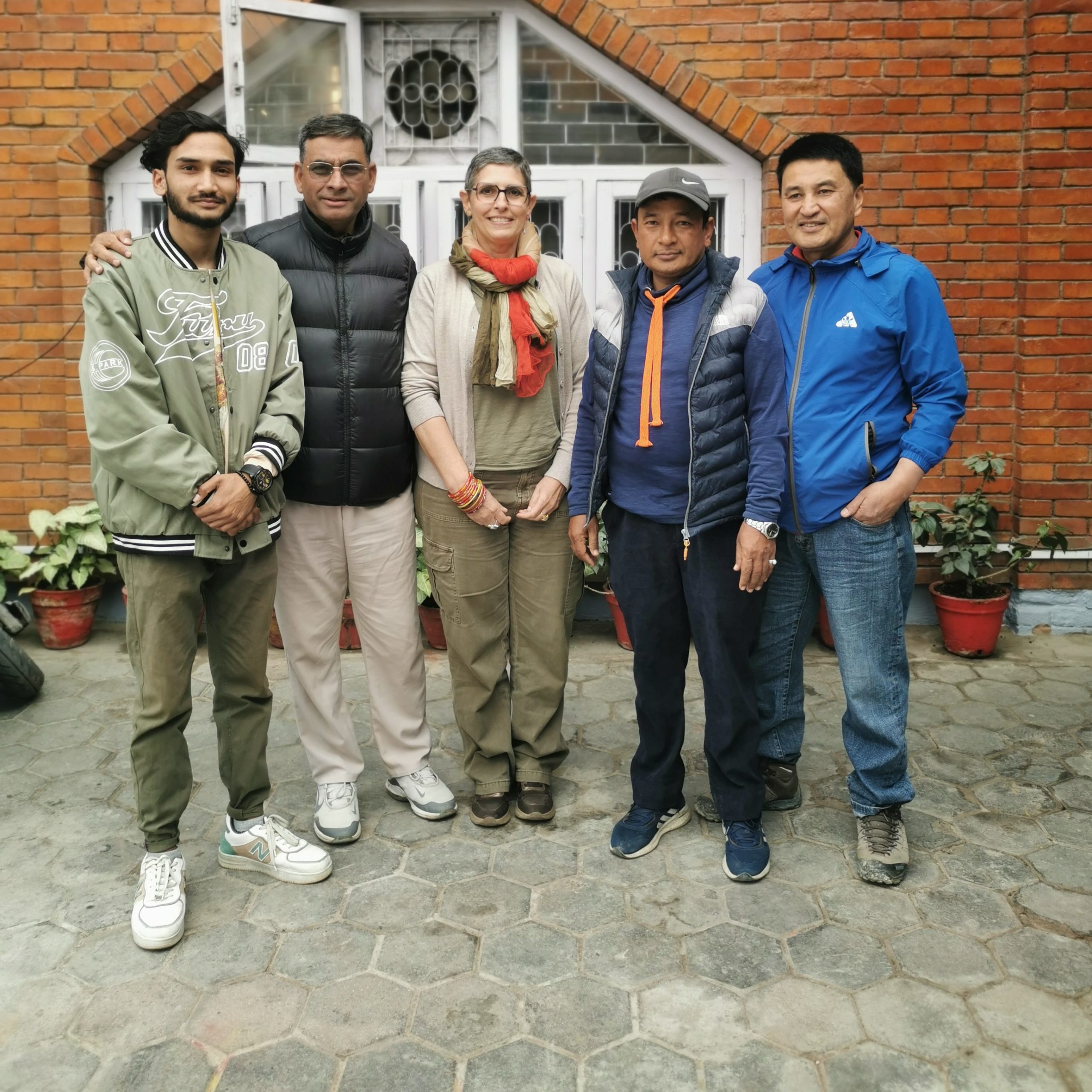 La nouvelle constitution du bureau au Népal 2024. De gauche à droite Avinash notre nouveau trésorier, Krishna notre coordinateur, Valérie Présidente du bureau français, Shyam Krishna le Président du bureau au Népal, Sanchit notre ancien trésorier, membre très actif au sein de l’association